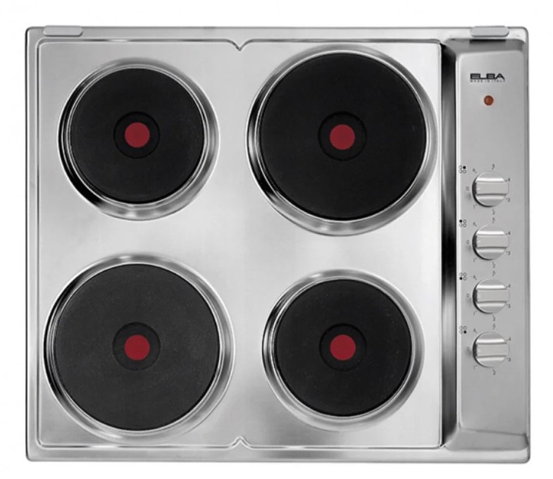 البا سطح بلت ان كهرباء حجر 60 سم, 4 شعلات سريعة الاشتعال, مفاتيح جانبية, استيل - AS ES60-046 X