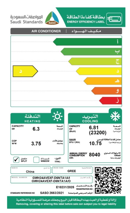 مكيف جرى جداري اي ماكس 24 حار بارد موديل جديد قدرة 23200 وحده ( فريون 32 )- موديل GWH24AVEXF-D6NTA1A