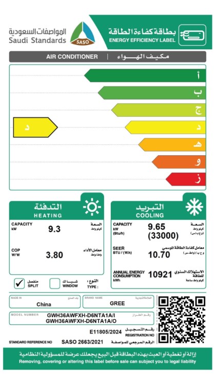 مكيف جرى جدارى اي ماكس 36 حار بارد موديل جديد قدره 33000 وحده ( فريون 32 ) - موديل GWH36AWFXH-D6NTA1A