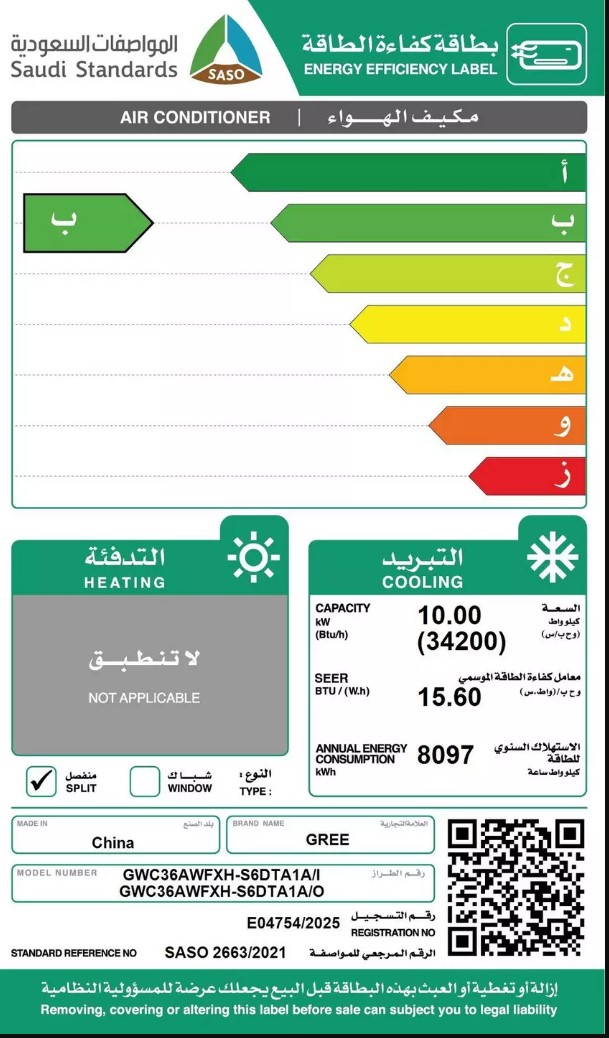 مكيف جرى جدارى اي بلس 36 بارد فقط موديل جديد (كوزمو) قدره 34200 وحده - موديل GWC36AWFXH-S6DTA1A