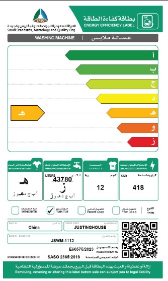 غسالة JUSTNGHOUSE حوضين 12 كيلو - JSWM-1112