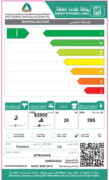 • الحد الأقصى لسعة الغسل (كجم)