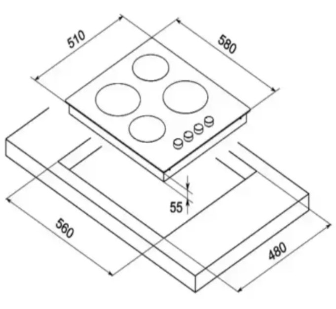 البا سطح بلت ان كهرباء حجر 60 سم, 4 شعلات سريعة الاشتعال, مفاتيح جانبية, استيل - AS ES60-046 X